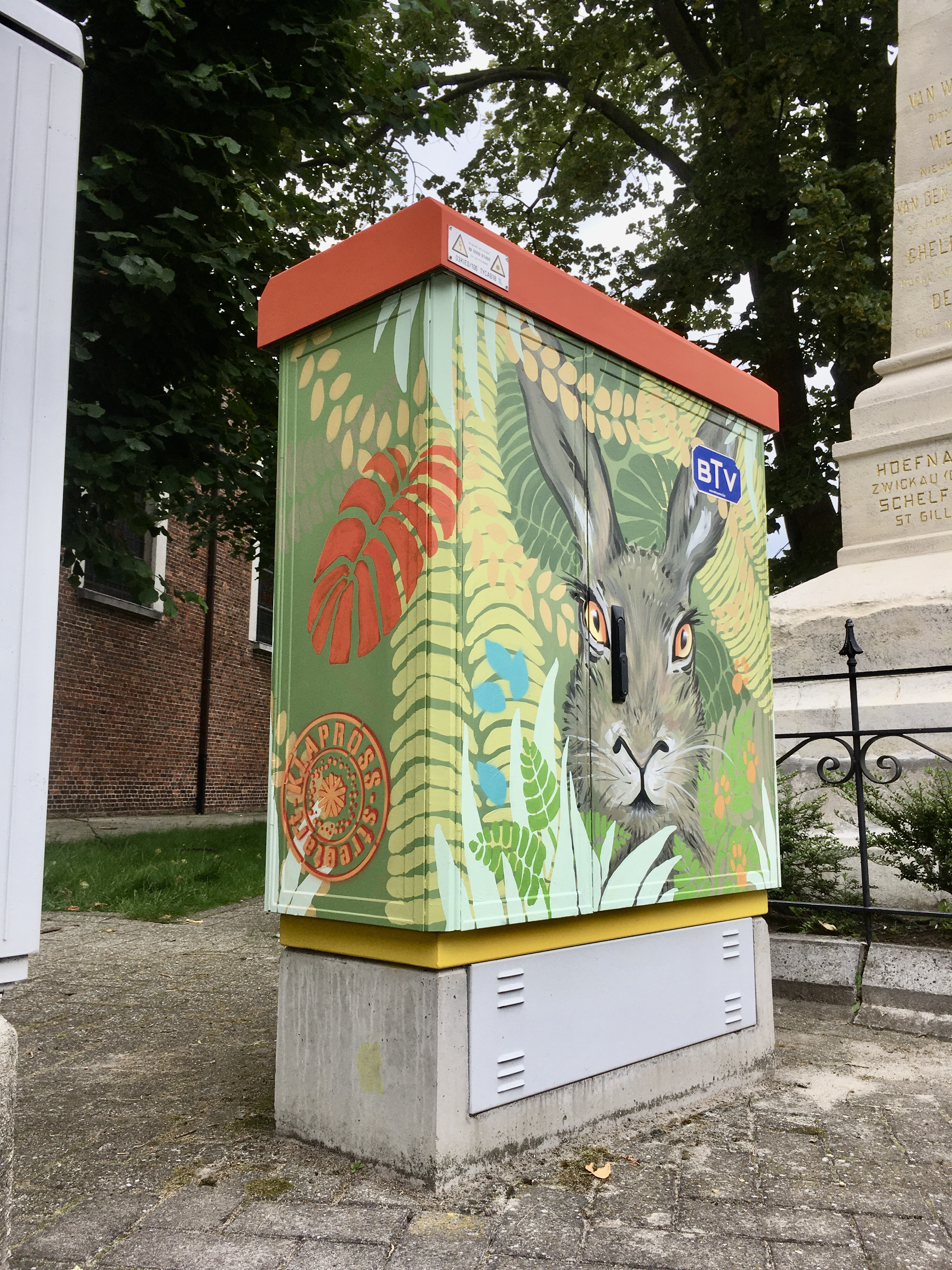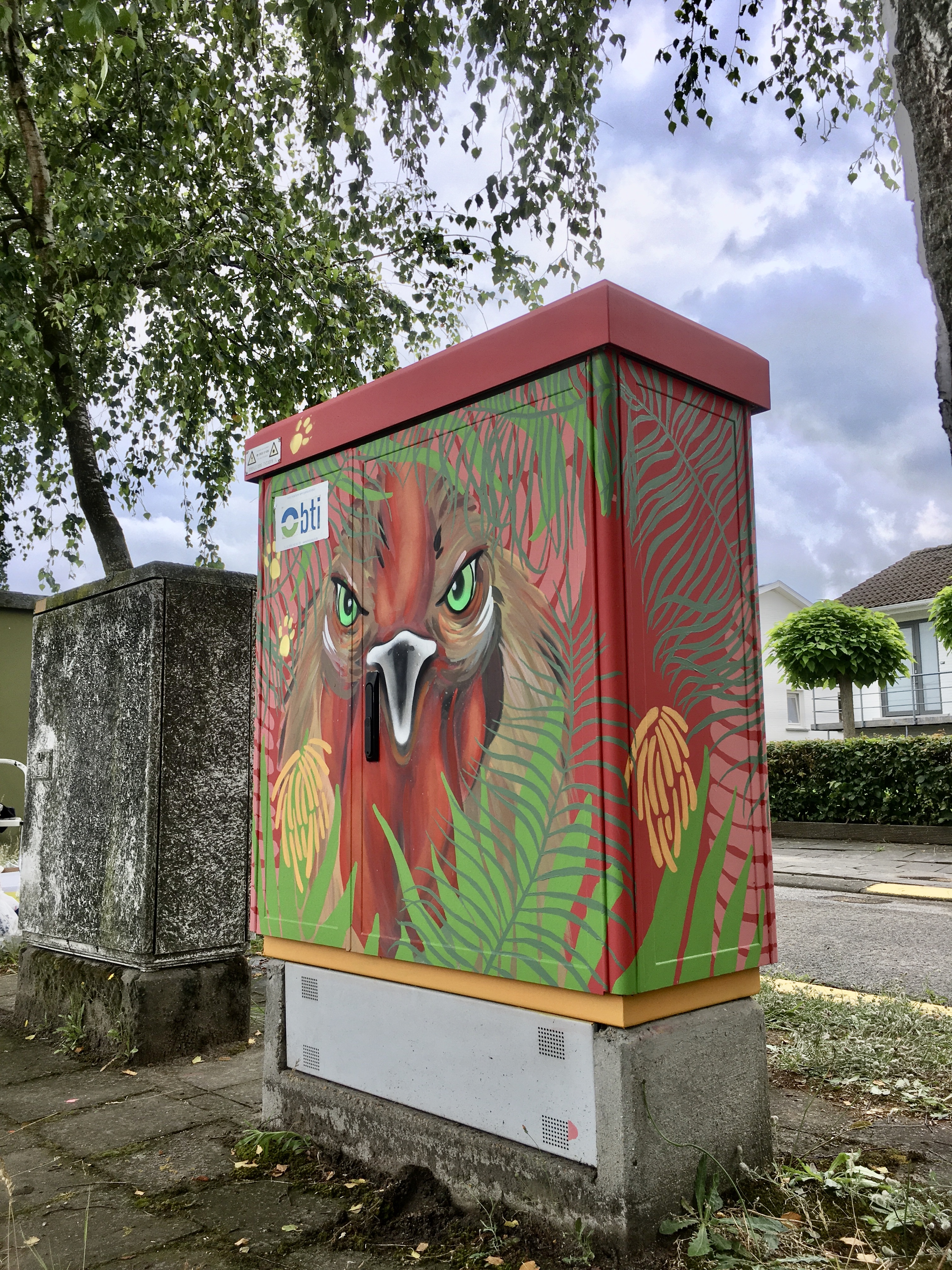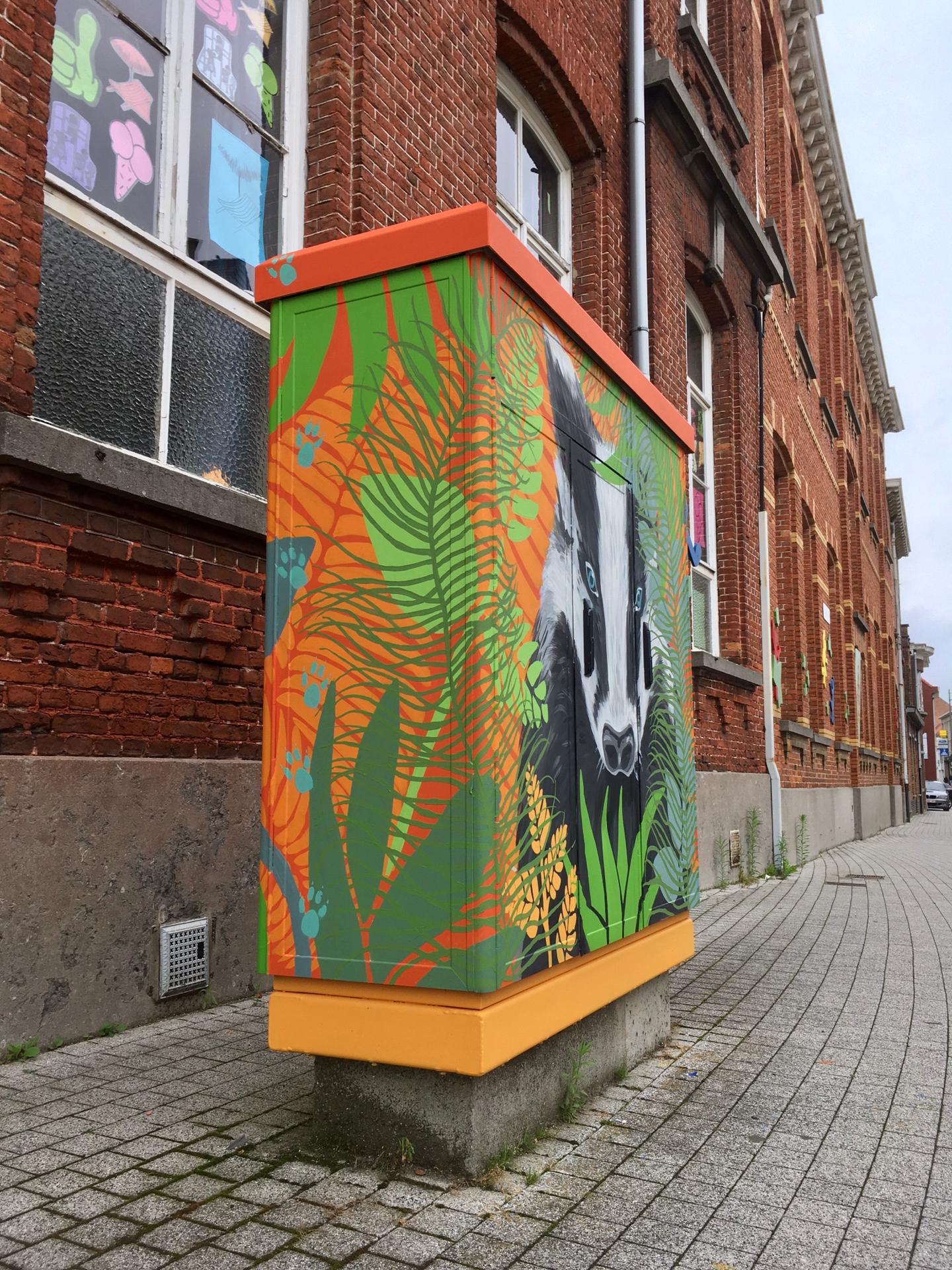 We beschilderden hiervoor 4 elektriciteitskasten elks met hun eigen verhaal en daarbij horend kleurenpallet. Deze opdracht resulteerde in een ontmoeting tussen de realistische dierenportretten van Lut en de flora van mijn hand.